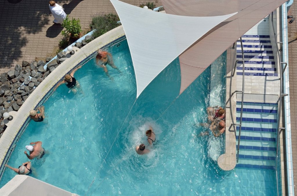 Gyógyvizes fürdőzés az Ensana Thermal Sárvár kültéri gyógyvizes medencéjében