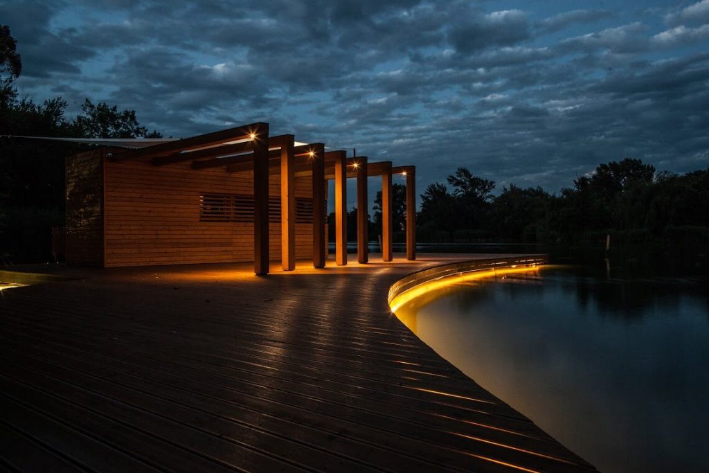Persze nem csak a fürdőváros központjában találhatók olyan látványosságok, amik este is jól mutatnak. A csónakázó tavaknál lévő modern csónakház ugyancsak gyönyörűen kivilágított. Talán ezen a környéken is érdemes egy hangulatos esti sétát tenni.